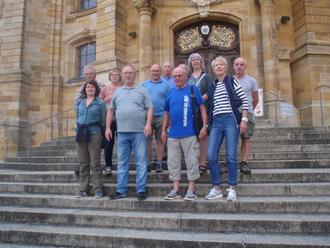 Früh, noch vor 7 Uhr trafen sich besonders begeisterte Fahrradfahrer um eine Wallfahrt mit dem Drahtesel nach Vierzehnheiligen zu starten. Es ging über Schwebheim, Grettstadt usw zur ersten größeren Rast in Oberschwappach. Dort trafen wir auf die Wallfahrer aus Gerolzhofen. Nach geistlichen Impulsen ging es schon wieder weiter. Über Maria Limbach fast bis Bamberg, davor wurde der Main überquert und nach Bad Staffelstein, meist über Radwegen bis nach Vierzehnheiligen geradelt. 90 Kilometer!!!