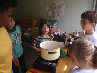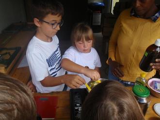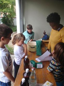 An der Bib wurden Fluide Mischungen hergestellt. Aus verschiedenen natürlichen, chemisch hergestellten oder herausdestillierte Zutaten rührten die teilnehmenden Kinder Seife, Shampoo und Lippenbalsam zusammen. Die ersten Weihnachtsgeschenke entstanden. Mit Zimt und typischen Farben wurden die Seife verfeinert. Das Shampoo duftet nach Kräuter und der Balsam ist ganz cremig.