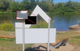 Schild „gelbe Welle“ Kanuanlegestelle Hirschfeld