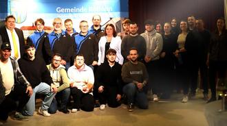 Weitere Glückwünsche zu ihrem sportlichen Erfolg galten der Korbballjugend der J15 der DJK Hirschfeld. Sie wurden Meister in der Bezirksliga und stiegen damit in die Landesliga auf. Trainer Manuel Balling vertrat die Mannschaft an diesem Abend und nahm Glückwünsche und Gutschein für seine Mannschaft entgegen.