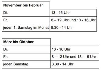 Es gelten ab Februar folgende Öffnungszeiten (abweichend von den Angaben im Abfallkalender):