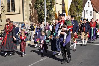 Ganz traditionell schlängelte sich der bunte Festzug, gestartet mit kleiner Verspätung, auf gewohnter Route durch Röthlein vorbei an der Kirche, über die Hauptstraße und den Platz unter den Linden bis hin zum idyllischen, bestens besuchten Trachtenplatz, auf dem dann das stimmungsvolle Erntedankfest mit Dankesworten und mit den sicherlich letzten fränkischen Plantanzrunden unter freiem Himmel bei traditionellem Federweißen und Zwiebelplootz seinen gemütlich-geselligen Ausklang fand.