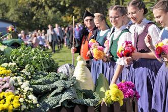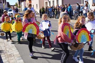 Bunte Trachten, schöne Klänge und kreative Festwagen brachten auf vielfältige Weise ihren Dank der Natur gegenüber zum Ausdruck; ein besonderes Highlight waren auch in diesem Jahr wieder die Kindergartenkinder, die als kleine Sonnen, Wolken und Regenbögen unter dem Motto „Sonne und Regen – für die Ernte ein Segen“ den Besuchern am Straßenrand ein Lächeln ins Gesicht zauberten.