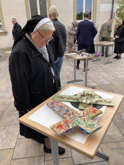 Groß war die Freude an der Mädchenrealschule Volkach, als am Freitag, 07.10.2022 der Erweiterungsbau für die naturwissenschaftlichen Fächer, die neuen Horträume und der Übergang der Betriebsträgerschaft vom Orden der Dillinger Franziskanerinnen auf die Stiftung der Dillinger Franziskanerinnen St. Maria gefeiert wurden. Stiftungsvorständin Frau Sonja Eschenbacher und Schuldirektorin Frau Doris Roth konnten mit dem stellvertretenden Landrat Herrn Robert Finster, Volkachs 2. Bürgermeister Herrn Udo Gebert und Altbürgermeister Herrn Peter Kornell nicht nur einige kommunalpolitische Ehrengäste begrüßen, sondern ebenso den Direktor des katholischen Schulwerks Bayern, Herrn Dr. Peter Nothaft und den Leiter des Referats Schule und Religionsunterricht des Bistums Würzburg, Herrn Jürgen Engel, wie auch die Mitglieder des Provinz- und Stiftungsrates. Die Dienststelle des Ministerialbeauftragen in Unterfranken wurden vertreten durch Frau Yvonne Neumeier und Frau Anja Kuhn. Sr. Martina Schmidt, Provinzleiterin der Dillinger Franziskanerinnen (Deutsche Provinz), freute sich, dass neben den Schwestern des Volkacher Konvents mit der Oberin Sr. Elke Prochus auch die Mitarbeiter/innen der Schule, des Horts und der Ganztagesbetreuung sowie die Klassensprecherinnen als Vertreter der Schülerschaft den Feierlichkeiten beiwohnten. Sie gab in ihrer Ansprache einen Rückblick über die Gründung der Stiftung und deren Zweck und hob dabei hervor, dass man trotz zu bewältigender Krisen in der Vergangenheit immer wieder den Mut fand, weiterzumachen und die Schule zu dem zu entwickeln, was sie heute ist. Sie vertraut darauf, dass an diesem Ort auch weiterhin der christliche Glaube gelebt und die franziskanischen Werte hochgehalten werden. Herr Florian Göger, Architekt des Erweiterungsbaus, gab einen kurzen Überblick über die Planung und die Herausforderungen, die im Zuge des Neubaus zu bewältigen waren. Er legte dabei stets großen Wert auf Ökologie, Nachhaltigkeit und eine harmonische Gesamtkomposition. Im vergangenen Jahr konnte an der Mädchenrealschule zudem vieles renoviert, modernisiert und verändert werden. Frau Klara Adams, Konrektorin der Mädchenrealschule, stellte diese Neuerungen vor und bedankte sich gleichzeitig bei allen, die mit Rat und Tat, aber auch mit Spenden, dazu beigetragen haben, alles zu verwirklichen. Für jedes Klassenzimmer gestalteten einige Schülerinnen gemeinsam mit Pater Meinrad Dufner aus Münsterschwarzach und Frau Renate Mink individuelle Kreuze. Diese wurden wie auch der Neubau am Ende des Festaktes im Beisein aller Gäste von Herrn Pfarrer Johannes Hofmann aus Volkach gesegnet. Beim anschließenden Empfang im Speisesaal bestand die Möglichkeit, miteinander ins Gespräch zu kommen und die neuen Räumlichkeiten zu besichtigen.