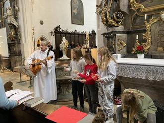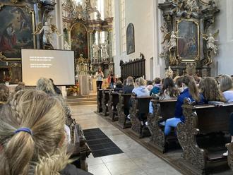 Am 07.10.2022 feierten die Schülerinnen der Mädchenrealschule Volkach den Namenstag des Schutzpatrons ihrer Schule und gleichzeitig den Beginn eines neuen Schuljahres mit einem gemeinsamen Gottesdienst.