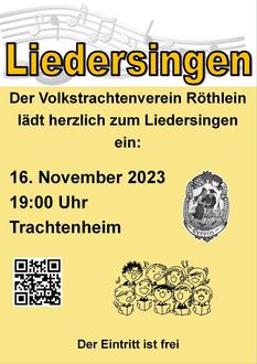 Der Volkstrachtenverein Röthlein freut sich auf einen schönen Abend mit vielen SängerInnen.
