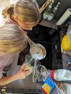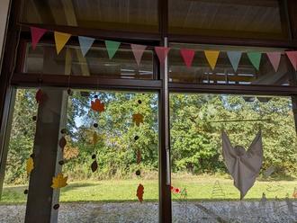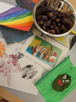 Wir waren auch mit den Kindern beim Einkaufen, haben einen Apfelkuchen aus den Äpfeln des Schulgartens gebacken und einen Geburtstagskalender sowie Herbst- und Halloweendekoration gebastelt. Außerdem haben die Kinder mit Farben und Aquarellpapier tolle Kunstwerke gestaltet.