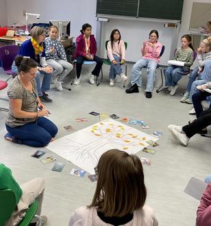 Zusammen mit den Mitarbeiterinnen Susanne Müller und Birgit Hohm von der KjA Würzburg setzten wir, die beiden 5. Klassen der Mädchenrealschule Volkach, uns an diesem Tag intensiv mit uns und unseren Gefühlen auseinander. Nach einer kurzen Runde der Vorstellung des vorab gewählten Befindlichkeitsmonsters erfuhren wir voneinander, wie es uns geht. Danach überlegten wir bei dem 4-Ecken-Spiel, wie wir verschiedene Situationen gefühlsmäßig empfinden würden und tauschten uns darüber aus. Nachdem wir anschließend ein Akrostichon zu dem Wort „RESPEKT“ erstellt hatten, bestückten wir unseren „Klassenbaum“ mit Blättern, auf die jede schrieb, was ihr für ein gutes Miteinander wichtig ist. In Form einer Wahrnehmungsübung spürten wir als „lebender Baum“ das vorher Genannte von den Wurzeln über den Stamm bis zu den Ästen mit den Blättern nach und definierten dabei unseren Körperraum. Wir stellten im Anschluss daran fest, dass wir alle ganz unterschiedlich tolerant sind, was z.B. eine Umarmung zur Begrüßung oder Wangenküsschen anbelangt. Auch über kulturell bedingte Unterschiede diesbezüglich unterhielten wir uns. Nun stand die letzte Aufgabe an: Wir beurteilten über ein Murmelspiel Geschichten danach, ob sie ein dunkles oder ein helles Geheimnis beinhalteten. Dabei erkannten wir, dass wir uns nicht nur bei diesem Spiel stets auf unser Bauchgefühl verlassen können und bei dunklen Geheimnissen oder Drohungen Personen unseres Vertrauens einweihen müssen. Nur helle Geheimnisse sind echte Geheimnisse und damit wir uns stets daran erinnern, durften wir uns zum Schluss ein kleines Schatzkästchen mitnehmen.