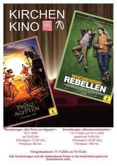 Auch dieses Jahr werden wir ein Kirchenkino organisieren. Termine sind der 15. November ab 19 Uhr und der 16. November ab 15 Uhr und 19 Uhr in der Auferstehungskirche. Der Gottesdienst am Sonntag 17. November mit Pfarrer Wölfel schließt inhaltlich an den Film an. Eintritt ist zu allen Veranstaltungen frei.