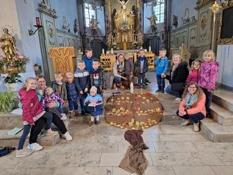 Es ist Herbst …, eine von vier Jahreszeiten. Gemeinsam mit den Kindern entdeckten wir die Schönheit der Natur im Herbst und Gottes Schöpfung. So gibt es für alles eine Zeit - eine Zeit zum Pflanzen, eine Zeit zum Ernten, eine Zeit zum Arbeiten und eine Zeit zum Ausruhen. Die Jahreszeiten geben uns die Reihenfolge vor und folgen einer natürlichen Ordnung. Wir haben allen Grund, dafür dankbar zu sein und wir haben festgestellt, wie die verschiedenen Zeiten uns prägen. Auch die kirchlichen Feste und Gedenktage orientieren sich daran. Im Kirchenraum gab es einige Zeichen zu entdecken, die uns das ganze Jahr über an bestimmte Festtage erinnern. Über den gelungenen Kindergottesdienst freuen sich die Kinder, anwesende Familienmitglieder und das Kinderkirche-Team Barbara Rippstein und Elke Korbacher