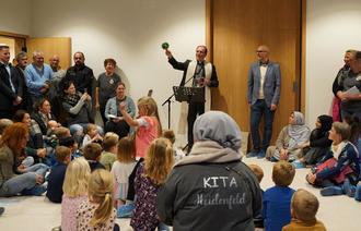 Nun wird es Zeit, sind sich alle einig, dass das schöne Bauwerk mit Leben erfüllt wird, deshalb wünschte auch die Elternbeiratsvorsitzende Silvia Sauer schon mal allen einen "Guten Start". Zwei Jahre lang waren Kinder und Personal in der Heidenfelder Mehrzweckhalle „ausgelagert“ und können es nun kaum erwarten, endlich in die neuen Räumlichkeiten einzuziehen. Die bieten nämlich gerade mit Blick auf das neue offene Pädagogikkonzept eine Fülle von Möglichkeiten, stellten die beiden Kindergartenleiterinnen Natalie Kuhn und Daniela Schmitt begeistert fest. Begeisterung, die auch die 70 Kinder und deren Eltern immer wieder äußerten, die in Grüppchen schon mal auf Schuhüberziehern das neue Refugium eroberten, bevor es am zweiten November dann ganz offiziell heißt, wie schon zur Übergabe aus Kindermund intoniert: “Einfach Spitze, dass du da bist“.