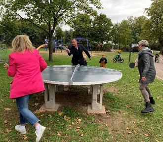 Outdoor Fitness und Freiluft - Tischtennis in vielen Varianten und eine Teqball-Anlage am Schulspielplatz