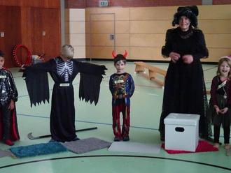 Gespenster, Skelette, Hexen, Zauberer, Kürbisse, Spinnenfrauen, Teufelchen und noch viele mehr trafen sich in der Turnhalle des TSV-Röthlein. Wir feierten eine Halloweenparty. Heike sorgte für abwechslungsreiche Unterhaltung. Es gab Spiele, die man nur mit vielen Kindern gemeinsam spielen kann. Fang den Kürbis war am spannendsten. Die Kinder mussten den Kürbis in Sicherheit bringen und das ging nur gemeinsam. Schon gab es das nächste Highlight: Zaubershow mit Handabschneiden und Säbel schlucken(eklig); Seilspringen mit einem langen Seil (alle konnten es); Malen und basteln; Luftballontiere und Geisterhand anfertigen. Zum Schluss durften die Kinder sich künstlerisch austoben. Gruselig wars.