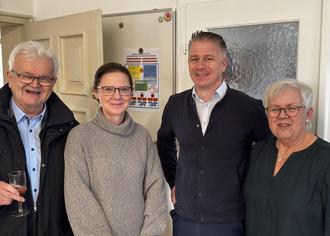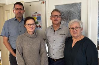 Daniel Fisher und Manfred Klüpfel von der Kirchenverwaltung zusammen mit den Pfarrsekretärinnen