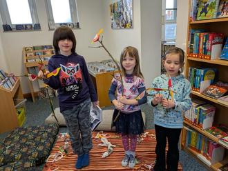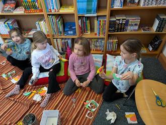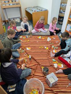 Anschließend und zur Beruhigung wurde gebastelt. Wir schnitten Kreise aus, in klein und groß. Nach Faltung und Kleberei, mit Schnabel und Schwanz wurden Vögel daraus. Diese wurden auf ein Zweiglein geklebt.