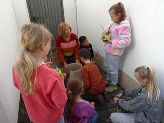 Die „Harten“ kamen in die Bücherei. Schönstes Wetter und Vorlesen! Die die kamen haben es nicht bereut. Nach spannenden, lustigen und fröhlichen Geschichten wurde ein Ostergarten gemacht. Häschen und Küken am Ast der in einem Glas mit Samen steckte. Wer das Gießen nicht vergisst, wird bald Kresse ernten.