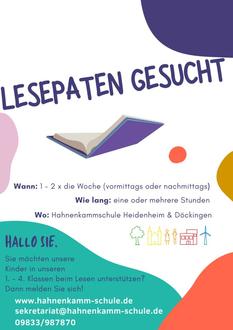 Die Hahnenkammschule freut sich über neue Bewerbungen als Lesepate oder Lesepatin.
