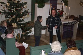Erika Neumeyer wird von Chorleiter Andreas Kritsch mit einer Ehrung überrascht