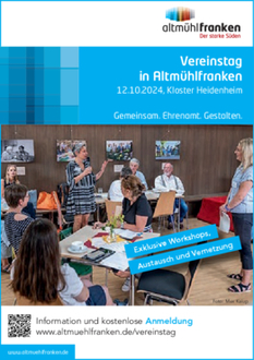 Am Samstag, 12. Oktober 2024, dreht sich im Kloster Heidenheim alles um das Thema Ehrenamt und Vereinsleben. Die Freiwilligenagentur Altmühlfranken lädt zusammen mit dem Landesnetzwerk Bürgerschaftliches Engagement Bayern alle Vereine aus Altmühlfranken zum 1. Vereinstag ein. Anmeldungen sind ab sofort möglich.