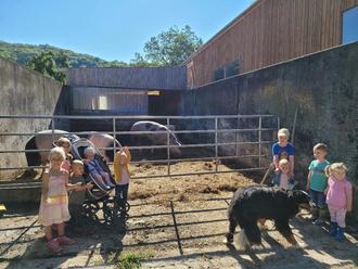 Anfang August haben wir die Krabbelgruppe ins Heidenheimer Freibad verlegt und Ende August durften wir den Berghof in Oberweiler besichtigen und tatkräftig beim Füttern der Tiere mithelfen. Mit bereitgestellten Schubkarren haben die Kinder die Kühe versorgt, die Schweine haben altbackenes Brot aus der Hand gefressen und den Straußen durften wir, jedoch mit ein wenig Sicherheitsabstand, beim Fressen zuschauen.