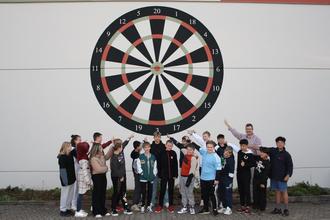 Es war ein tolles Projekt. Wir haben berechnet, viel gelacht, viele neue Sachen gelernt und sind total stolz auf unser Schulprojekt. Die Dartscheibe wird hoffentlich viele Jahre die Turnhalle unserer Schule schmücken.