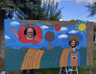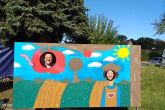 Die Hahnenkammschule hat sich am 4. Altmühlfränkischen Streuobsttag in Heidenheim mit einer Fotowand beteiligt. Die Wand wurde von den Schülerinnen der 8. und 9. Jahrgangsstufe liebevoll mit Motiven zum Streuobst gestaltet. Viele Besucher nutzten die Chance, steckten ihren Kopf durch den Apfel oder den Bauern und ließen sich an der Wand als Erinnerung ablichten. Sogar prominente Gäste waren dabei.