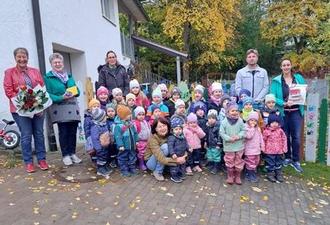 Am 2. November überraschte die Kita aus Hechlingen die langjährige Mitarbeiterin Christa Burger bei ihr zuhause. Drei Jahrzehnte Arbeitseinsatz und auch liebevolles Engagement darüber hinaus müssen schließlich gefeiert werden. Zunächst bedankte sich Bürgermeisterin Susanne Feller bei Frau Burger und überreichte einen Blumenstrauß. Anschließend übergab auch der Elternbeirat ein kleines Geschenk und einen Essensgutschein und hob in einer kurzen Rede, in der Frau Burger mit einem wertvollen Fußballspieler verglichen wurde, den besonderen Einsatz hervor. Zum krönenden Abschluss sangen die Kindergartenkinder ein Lied für die Jubilarin und trugen zusammen mit Brigitte Belzner-Minderlein ein Gedicht vor. Ganz stolz überreichten die Kinder schließlich ihren selbstgemachten Fußabstreifer. Christa Burger war sehr gerührt und möchte sich in kulinarischer Form bei der Kita bedanken. Dabei können die Kinder in einer Kinderkonferenz demokratisch zwischen drei verschiedenen Gerichten auswählen, die Frau Burger ihnen kochen möchte. Auch diese Geste zeigt wieder die Einsatzfreude von letzterer und die Kita bedankt sich hierfür bereits im Voraus. Möge sie uns noch lange erhalten bleiben!