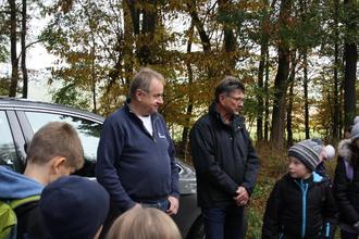 Kurz vor den Herbstferien machten sich die Kinder der Klasse 4a der Hahnenkammschule Heidenheim bei herrlichem Herbstwetter auf zu einem besonderen Unterrichtstag im Wald. Am Waldrand des Gebietes Rothenweg, trafen sie auf Heidenheims 2. Bürgermeister Gerhard Neumeyer, Revierförster Michael Kirsch und den Waldpädagogen der BayWa Stiftung Herbert Bauernfeind. Die Schule hatte sich für dieses Waldprojekt der BayWa Stiftung erfolgreich beworben.