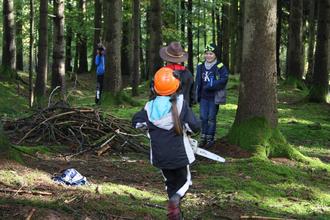 Mittels waldpädagogischer Übungen wurden die Kinder spielerisch in die Welt des Forstens eingeführt. Sogar eine echte Motorsäge – allerdings ohne Kette - durfte ausprobiert werden.