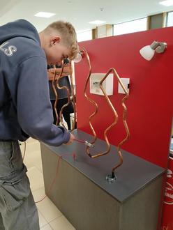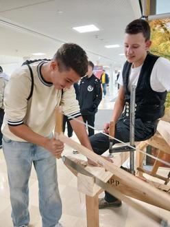 So durften – um nur ein paar Beispiele zu nennen – Schaltkästen gebaut, Brezeln gedreht, Holz gesägt und „Rohrherzen“ gebaut werden. Fast wie nebenbei konnten erste Kontakte zur Arbeitswelt geknüpft werden. Ausbilder und Auszubildende der verschiedenen Berufsbilder standen für Fragen zur Verfügung oder halfen Interessierten bei der Ausführung der ersten Arbeitsschritte.