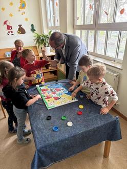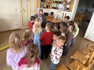 Der Besuch stand zugleich ganz im Zeichen des diesjährigen Jahresthemas „Bei uns im Dorf, da ist was los“ – denn passender hätte das Motto kaum umgesetzt werden können: Der Landrat kommt zu uns in die Kita! Für die Kinder war dies ein echtes Highlight.