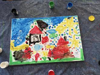 Im Anschluss wurde es kreativ: Weil die Stifte in der Geschichte „nicht mehr konnten“, griffen die Kinder zu Fingermalfarben und gestalteten gemeinsam eine große Leinwand. Mit viel Freude und Fantasie entstanden bunte Kunstwerke, die diesen besonderen Vormittag abrundeten.