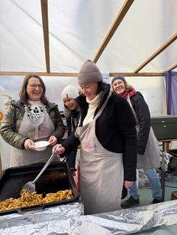 Am Heidenheimer Weihnachtsmarkt verkauften die Lehrkräfte gemeinsam mit einigen Kindern der Mittelschule leckere herzhafte und süße Schupfnudeln sowie weihnachtliche Postkarten. Diese wurden während unserer großen Weihnachtskartenaktion von den Kindern liebevoll gestaltet. Nach Abstimmung durch die Klassen werden die Einnahmen dieses Jahr an das Ronald McDonald Haus München am Deutschen Herzzentrum gespendet.