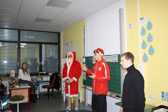 Gemeinsam mit den fleißigen Helfern der SMV verteilte er Geschenke an die Schülerinnen und Schüler.