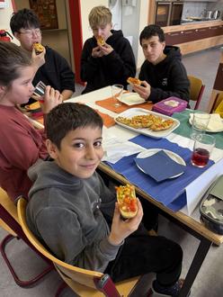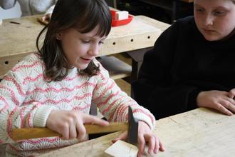 Die Mittelschulklassen hatten mit ihren Lehrkräften attraktive Angebote vorbereitet: Im PC-Raum wartete Herr Wokon mit der 7a. Bei Frau Schmidt konnten die Gäste die Klasse 5a auf Englisch kennenlernen. Geometrie mit den Magfomers hatte Frau Schneider-Ebert mit der 7a vorbereitet. Im Werkraum konnten die Viertklässer mit Unterstützung der 7. Klasse und Herrn Häring Holzherzen gestalten. Im Klassenzimmer der 8a hatte Frau Dornberger Tablets vorbereitet, um digitale Berufsorientierung erlebbar zu machen. Die 9. Klasse führte unter der Regie von Frau Gebert in die Schulküche ein. Sie hatten vorher fleißig Pizzasemmeln produziert, sodass niemand mit leerem Magen zur nächsten Station ziehen musste.