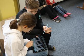 Die Mittelschulklassen hatten mit ihren Lehrkräften attraktive Angebote vorbereitet: Im PC-Raum wartete Herr Wokon mit der 6a. Frau Stretz lud mit der 5a zu einer Zeitreise ins alte Ägypten ein. Aufgaben im Escape-Room hatte Frau Schneider-Ebert mit der 5a vorbereitet. Im Werkraum konnten die Viertklässer Erfahrungen mit Unterstützung der 7. Klasse und Herrn Häring sammeln. Andere Siebtklässer führten unter der Regie von Frau Klungler und Frau Schnell in die Schulküche ein. Im Musikraum wurde unter Anleitung von Frau Stierhof und der 6a auf den Tablets komponiert.