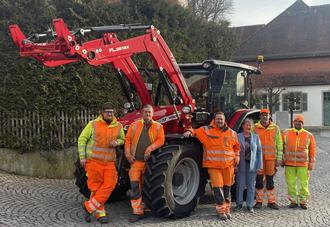 die Gemeindearbeiter zusammen mit 1. Bgm. Feller freuen sich über die Neuanschaffung