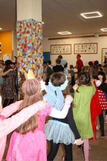Am unsinnigen Donnerstag war was los bei uns. Bunt verkleidet saßen kleine Piraten, Polizisten, Prinzessinnen, ja sogar eine Banane im Unterricht. Angeführt durch unseren Verbindungslehrer Daniel Wokon „Obelix“ und die SMV startete in der 4. Stunde eine große Faschingspolonäse und holte die einzelnen Klassen Zimmer für Zimmer ab. In der Aula tanzten und feierten die Schülerinnen und Schüler, die SMV animierte die Menge mit Tänzen. Zum Ende wurde die Klasse mit den meisten Kostümen ausgezeichnet und es gab eine Kostümprämierung, die ein Teletubby gewann. Gerne erinnerten sich die Kinder am Freitag an den bunten Tag.