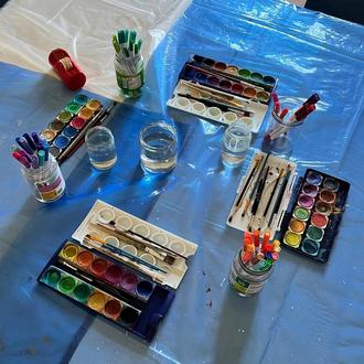 Die Kinder konnten gegen einen kleinen Unkostenbeitrag aus Salzteig Ostereier und Osterhasen bemalen und als bunt verzierte Osteranhänger mit nach Hause nehmen.