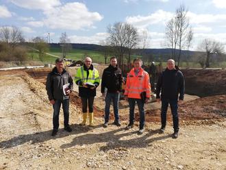 Die Arbeiten wurden Mitte März 2023 begonnen und stellten die Fa. Heuchel, aufgrund der nassen Bodenverhältnisse, vor erhebliche Herausforderungen. Immerhin mussten ca. 3.000 m³ Erdreich ausgebaggert werden.
