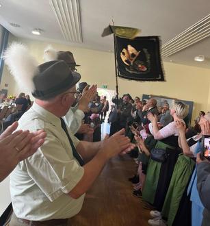 Bereits am Donnerstag konnten die Schützenkönige der Königlich privilegierte Schützengesellschaft Heidenheim Robert Sauer (Herren), Renate Köhnlein (Damen) und Emma Moshammer (Jugend) nach der Proklamation am Marktplatz und dem Schützenumzug durch den Markt Heidenheim standesgemäß mit einem Spalier und dem Einzug der Fahne in der Alten Turnhalle begrüßt werden. Auch dem aus den Reihen der Heidenheimer Schützen stammenden Gaukönig 2025 Alexander Sauer wurde diese Ehre zuteil. Musikalisch wurde der Einzug der Schützen in gewohnter Weise von der Dornstädter Musikkapelle e.V. begleitet, die im Anschluss auch den Bieranstich durch die 4. Altmühlfränkische Bierkönigin Luisa Dudel, die 1. Bürgermeisterin Susanne Feller und die beiden Vorsitzenden des TSV Heidenheim e.V. Sven Kersten und Rainer Schäfer gekonnt musikalisch umrahmte. Im Anschluss wurde der Kirchweihauftakt mit sauren und gebratenen Bratwürsten, Krautfleisch und Salzknöchle in geselliger Atmosphäre gefeiert.