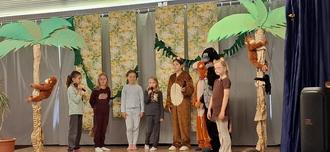 Am 3. Juni 2025 präsentierte unsere Theater AG das Stück „Die Affenkönigin – oder: Nur geträumt?“ von Michael Arnold. Dieses Jahr wirkten in der Theater AG insgesamt 12 Schülerinnen und Schüler aus der 2. bis 5. Klasse mit. Geleitet wurde die AG wieder von Frau Dötlein und Frau Schmidt.