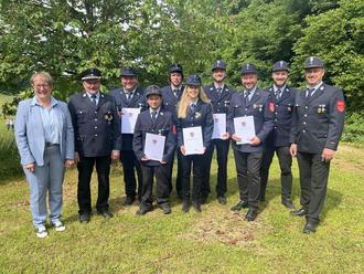 Im Rahmen des Himmelfahrtfestes in Hohentrüdingen, das diesmal von der Freiwilligen Feuerwehr Hohentrüdingen ausgerichtet wurde, konnte nach dem feierlichen Gottesdienst, der wunderbar vom Posaunenchor umrahmt wurde, folgenden Kameradinnen und Kameraden mit dem Ehrenzeichen in Silber für 25 Jahre Dienst geehrt werden: