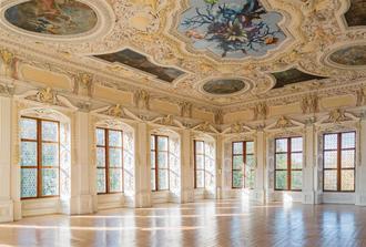 Zur Baugeschichte des Residenzschlosses Oettingen: Das barocke Residenzschloss wurde von 1679 bis 1687 erbaut. Als Baumeister wurde Mathias Weiß aus Kassel an den Hof geholt. Die prächtigen Stuckaturen wurden von Matthias Schmuzer aus Wessobrunn gefertigt. Der großartige Deckenstuck im lichtdurchfluteten Festsaal ragt unter den bekannten Beispielen von frühbarockem Stuck in Süddeutschland hervor. Architektur und Akustik begeistern im Sommer Konzertbesucher und Künstler aus aller Welt.
