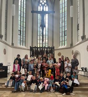 Am 26. Juli feierten wir einen fröhlichen Taufkindergottesdienst mit rund 30 Kindern. Wir hörten die Geschichte vom Taufbefehl – „Tauft sie auf den Namen des Vaters und des Sohnes und des Heiligen Geistes“ – und erfuhren auch, wer Jesus getauft hat. Die Kinder durften ihre Kuscheltiere taufen, eine kleine Kerze basteln und natürlich wurde auch viel gesungen. Zwischendurch gab es leckere Snacks mit Obst und Gemüse.