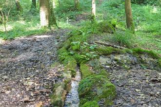 Am Hang des Hahnenkamms bei Hechlingen schlängelt sich ein ungewöhnlicher Wasserlauf durch den Wald - die Steinerne Rinne. Sie ist ein ganz besonderes und schützenswertes Biotop. Denn Steinerne Rinnen entstehen nur dort, wo oberhalb eines steilen Abhangs kalkhaltiges Quellwasser austritt, beim Bergabfließen stark bewegt und gut mit Luft durchmischt wird. In diesem Fall kann sich entlang des Wasserlaufes auf Moosen und Algen Kalk ablagern: Kalktuff entsteht. Wenn auf diesen Ablagerungen wieder frisches Moos wächst und sich der Vorgang wiederholt, wächst das Bachbett langsam in die Höhe - eine Steinerne Rinne entsteht.