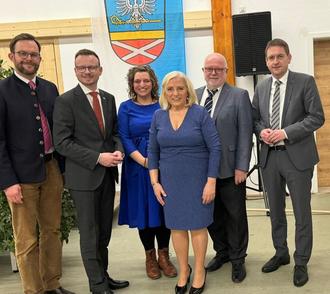 Nach 12 Jahren Amtszeit wurde Bürgermeisterin Edith Stumpf in feierlichem Rahmen in den Ruhestand verabschiedet. In ihren Grußworten würdigten Bezirkstagspräsident Peter D. Forster (2.v.li.), Landrat Dr. Jürgen Ludwig (re.) ihr insgesamt 30jährige kommunalpolitisches Wirken als Gemeinderätin, Kreisrätin und Bürgermeisterin der Gemeinden Langfurth und Mönchsroth. Der Vorsitzende der VG Wilburgstetten, Bürgermeister Michael Sommer (li.), würdigte den klaren Kurs von Edith Stumpf und bedankte sich für die gute, konstruktive Zusammenarbeit. Im Namen des Gemeinderates bedankte sich Martin Zinnecker für die Geduld, die die Bürgermeisterin mit den jungen, neu gewählten Gemeinderäten hatte. Für die Kirchengemeinden überbrachten Pfarrer Gunther Reese und Diakon Markus Munzinger die besten Wünsche für den Ruhestand. Im Namen der Feuerwehren, des TSV Mönchsroth und der übrigen Vereine bedankten sich Kdt. Jürgen Schmaus, Rainer Hahn und Klaus Kern sowie Günther Siebachmeyer für das stets offene Ohr für die Belange der Vereine. Edith Stumpf selbst bedankte sich bei allen Wegbegleitern für die entgegengebrachte Wertschätzung und das gegenseitige Vertrauen. Die Feier wurde umrahmt von Musikbeiträgen der Grundschulkinder, von Carla Nusselt und Roland Bergdolt und von Anna Lambrecht und Ulrike Nüsslein.
