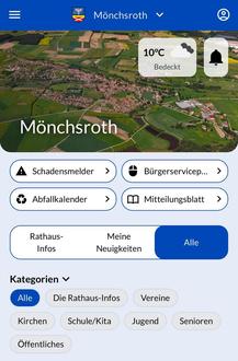 Die App ist bereits in den App Stores verfügbar. Nach dem Download der App wählen Sie die Gemeinde Mönchsroth aus und sind direkt informiert. Aktivieren Sie gerne die Push-Benachrichtigungen, damit Sie stets über Neuigkeiten direkt informiert werden. Eine weitere Registrierung ist nicht notwendig. Die App ist für die Bürgerinnen und Bürger sowie für die teilnehmenden Vereine kostenlos. Über die Kategorien können Sie sich die für die Sie relevanten Mitteilungen einblenden lassen und Unrelevantes ausblenden, so dass Sie sich die App entsprechend individualisieren können.