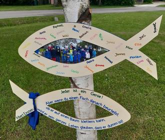 Im Vorfeld wurden Fische aus Holz in einer Gemeinschaftsaktion phantasievoll bemalt und verziert.