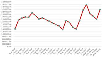 Der Haushaltsplanentwurf 2025 schließt in Einnahmen und Ausgaben ausgeglichen mit 6.200.800 € ab, davon entfallen auf den Verwaltungshaushalt 4.952.700 € und auf den Vermögenshaushalt 1.248.100 €.